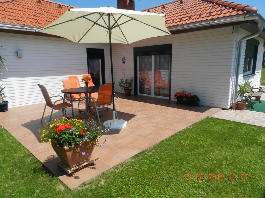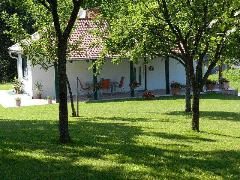 Die ruhige Lage abseits der viel befahrenen Straßen bietet die Möglichkeit zum Entspannen und Genießen mit einer großen Terrasse, welche übers Wohnzimmer zugänglich ist, und der großen Grünfläche rund ums Ferienhaus.