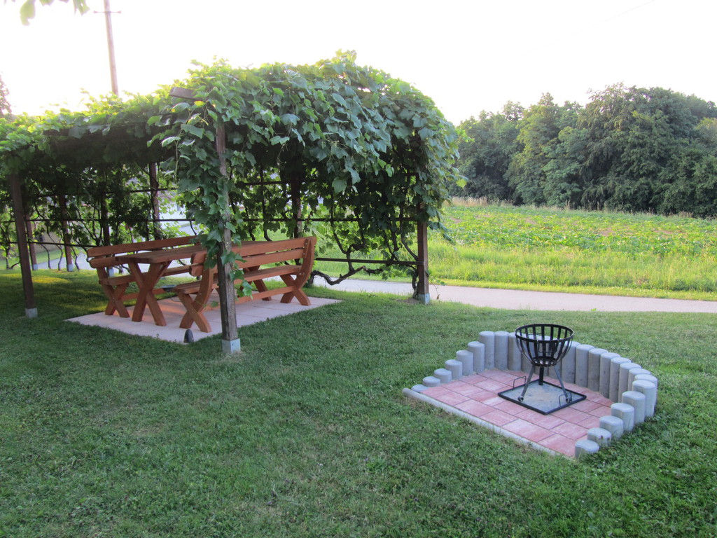 Auch die Weinlaube mit gemütlicher Gartenganitur lädt zum Verweilen ein. Daneben gibt es auch einen Grillplatz für laue Grillabende.